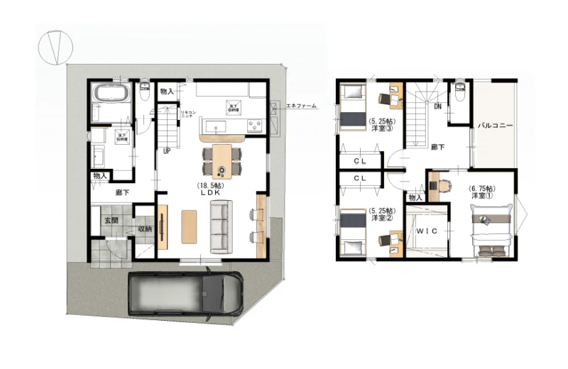 | 設備 | 上水道、下水道、都市ガス、電気、室内洗濯機置場、ガスコンロ、複層ガラス、駐輪場、モニタ付インターホン、照明器具付き、庭、ハイルーフ駐車場、カウンターキッチン、ガスキッチン、ガスコンロ設置可、3口以上コンロ、食器洗浄乾燥機、省エネ給湯器、パントリー、バス、シャワー、バス・トイレ別、浴室1坪以上、追焚機能、浴室乾燥機、浴室に窓、洗面台、温水洗浄便座、トイレ2箇所、トイレ、洗面所、シャンプードレッサー、床暖房、フローリング、ウォークインクローゼット、シューズインクローゼット、床下収納、収納スペース、ワイドバルコニー、システムキッチン、浴室暖房、南面バルコニー、洗濯機置場 | ||