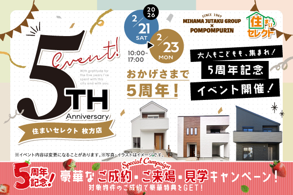 おかげさまで、住まいセレクト枚方店は5周年を迎えました!