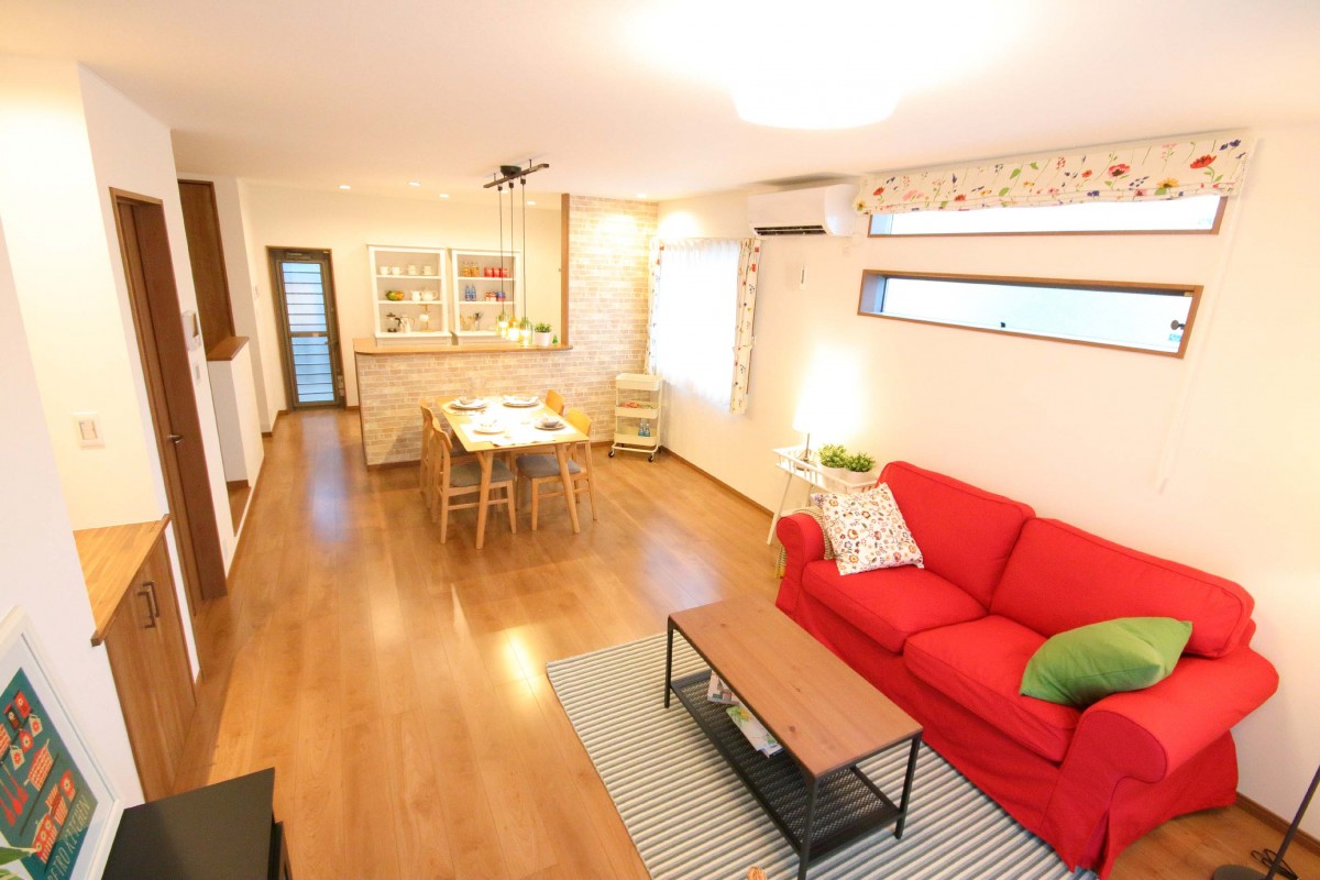 リビングは家の中で大半の時間を過ごす場所。 こだわりたいポイントですよね。 リビング横にカウンターを設けお子様の宿題スペースにしたり 収納を設けたり工夫色々です!