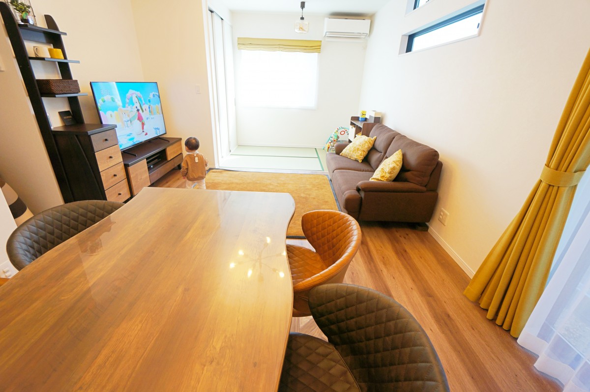 賃貸のときはダイニングテーブルが置けなかったので置いても大丈夫なくらい部屋が広いのがうれしいです。