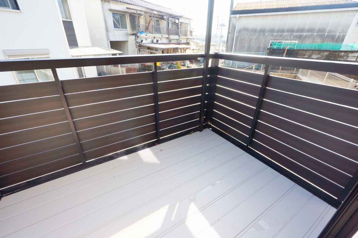 また、玄関まで階段があるので高さがあって隣の人と直接に隣というわけじゃないので敷地内は気を使うことなく物が置けて便利です。