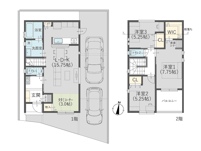 広々LDKと収納がたっぷりある3階建プラン