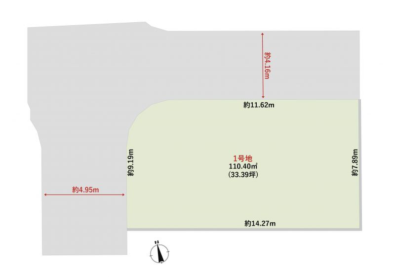 | 接道状況 | 北4.16m 接面11.62m 西4.95m 接面9.19m 角地 | ||