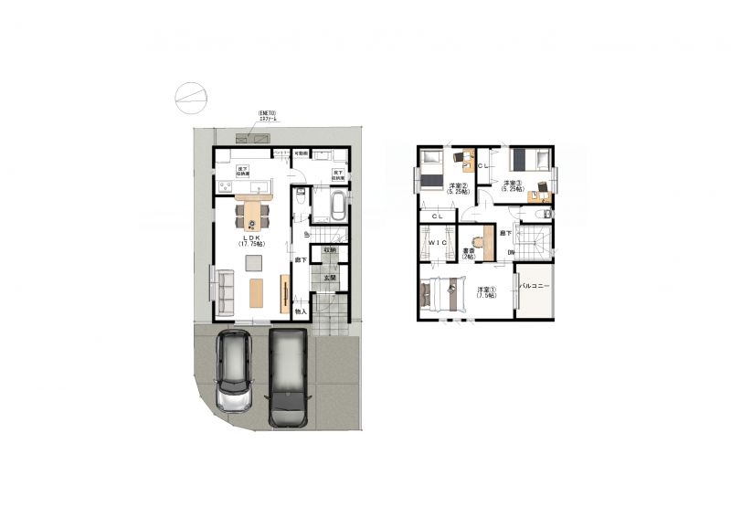 | 設備 | 温水洗浄便座、トイレ2ヶ所、追焚機能、浴室乾燥機、システムキッチン、カウンターキッチン、食器洗浄乾燥機、ウォークインクローゼット、床下収納、洗髪洗面化粧台、電気、都市ガス、上水道、下水道、複層ガラス、床暖房、モニタ付インターホン、ディンプルキー、■GX志向型住宅 ■耐震等級3『パワービルド工法』 ■エネファーム発電ユニット『ENETO』 | ||